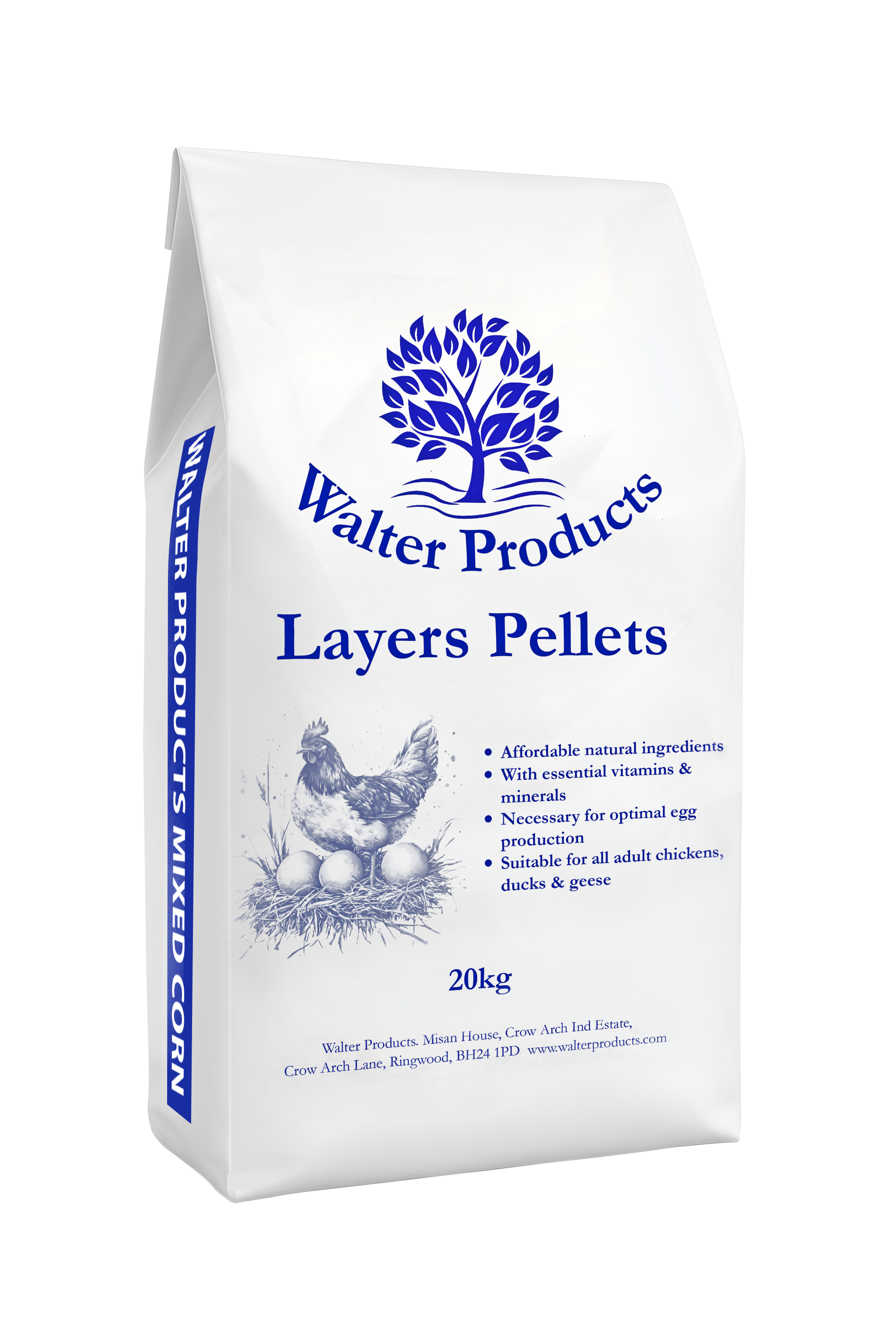 Walter Products Layers Pellets 20kg Bag, High Protein Chicken, Duck & Bird Feed - Complete Feed for Healthy Egg Production, Muscle, Tissue and Feather Development