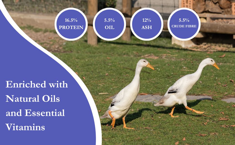 - FULLY BALANCED, HIGH PROTEIN BLEND - Packed with 16% crude protein, 5.50% Crude Fibres, 2.75% Crude Fats & Oils, 12.00% Crude Ash, 3.30% Calcium, 0.70% Lysine, 0.50% Phosphorous, 0.35% Methionine and 0.15% Sodium